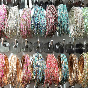 shiny crystal rhinestone with colorful acrylic stone and gold plating claw chain, elastic stretchable