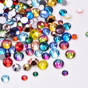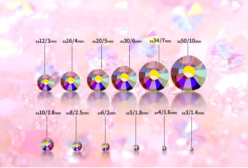 The flat back rhinestones most are used for nail art, small sizes rhinestones put on the nail, will make the nail very shiny, nail art rhinestones have round shapes and Fancy shapes, most are round shapes, customers always choose SS3-SS10 sizes rhinestones for nail art. The crystal AB colors is the most popular color.