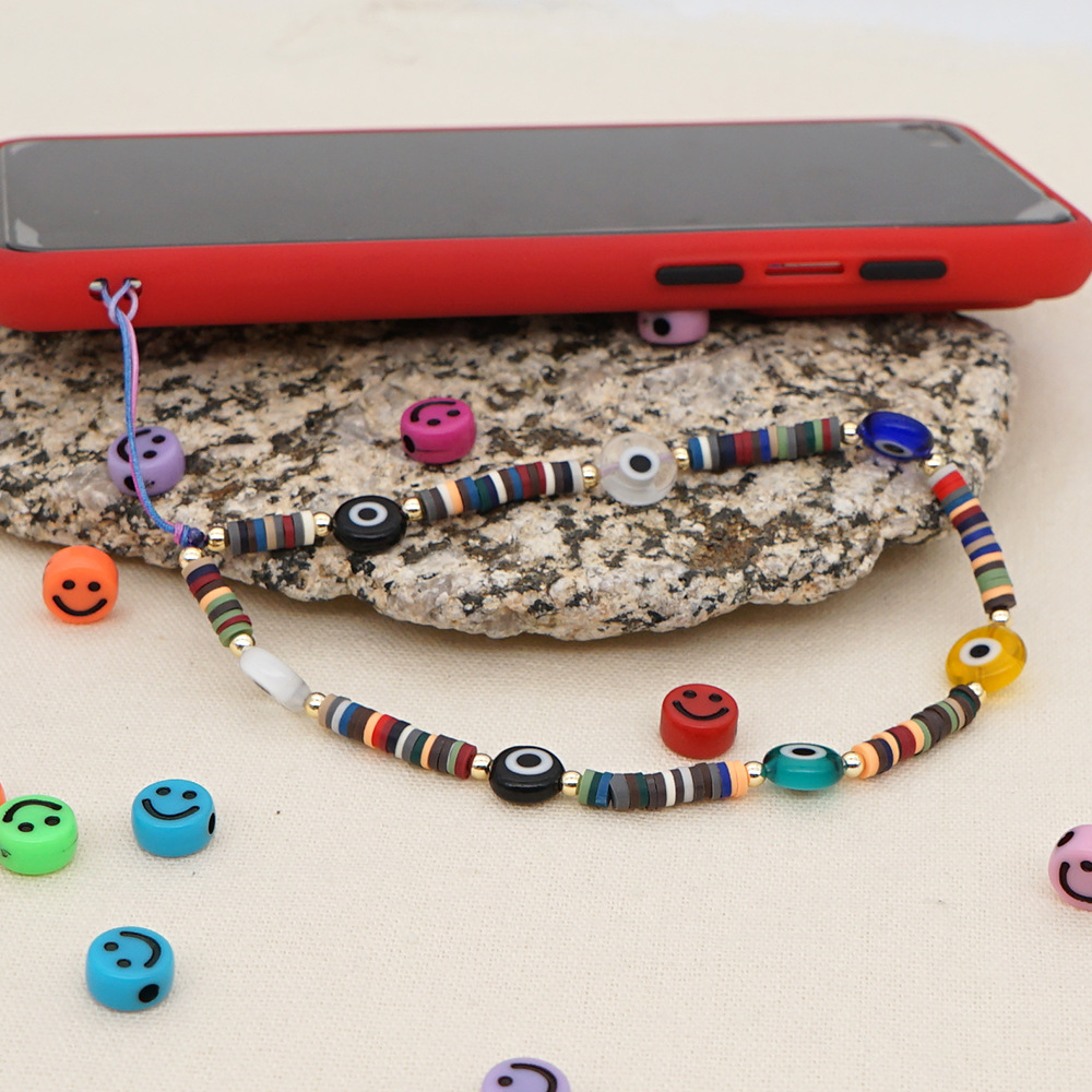 Handmade accessories wholesale individuality colorful phone case chain beads rainbow crystal glass beads phone lanyard,we have a lot of materials to choose from, there are pearls, seed beads, polymer clay beads, glass beads, you can also customize their own match. Mobile phone chain not only play a decorative role, but also convenient to carry, prevent the loss of mobile phone function.