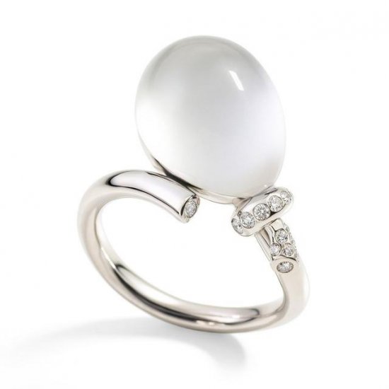 Palloncino white gold ring, set with white mother-of-pearl and colorless crystals, decorated with 17 round-cut diamonds with a total weight of 0.15ct.